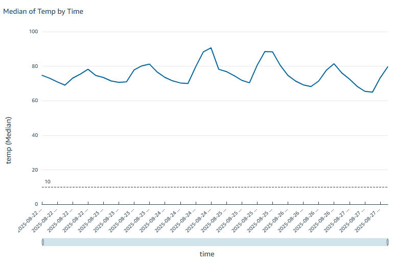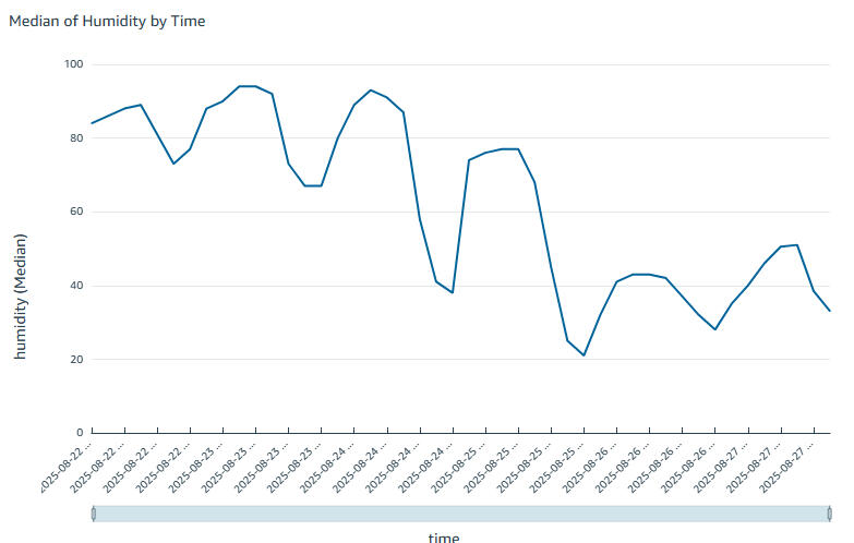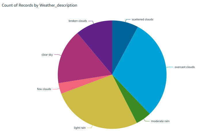 I connected QuickSight to Athena and generated several graphs which give a view of the weather forecasts in my area during the relevant period.